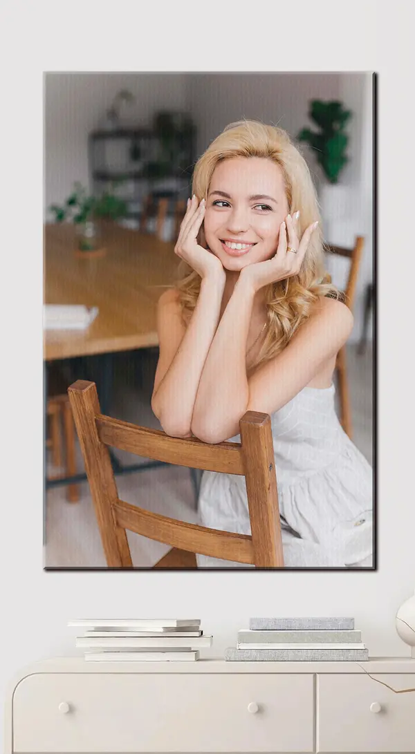 Mēs varam izdrukāt jūsu fotoattēlu uz audekla vai plakāta. Augšupielādējiet un pielāgojiet savu fotoattēlu mūsu redaktorā tikai 5 minūtēs.