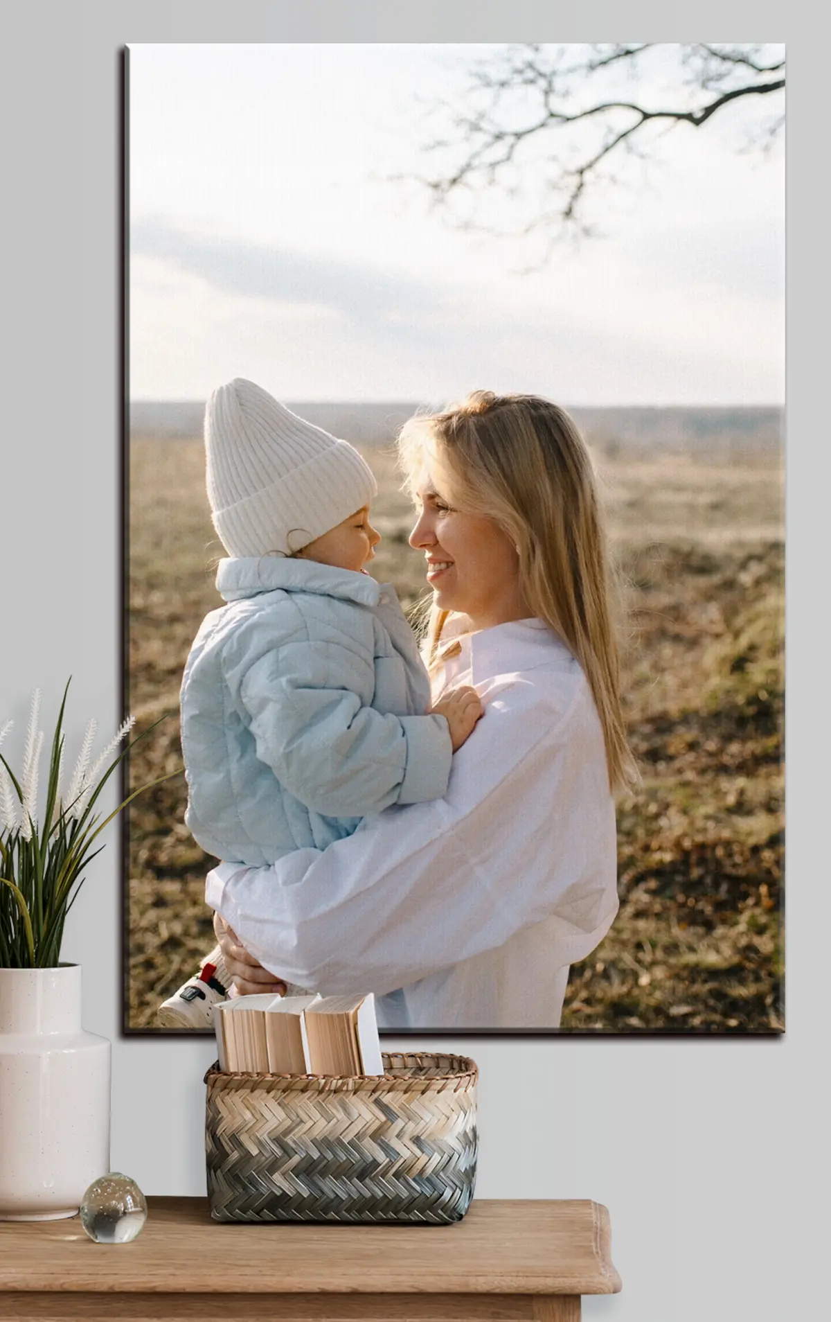 Mēs varam izdrukāt jūsu fotoattēlu uz audekla vai plakāta. Augšupielādējiet un pielāgojiet savu fotoattēlu mūsu redaktorā tikai 5 minūtēs.