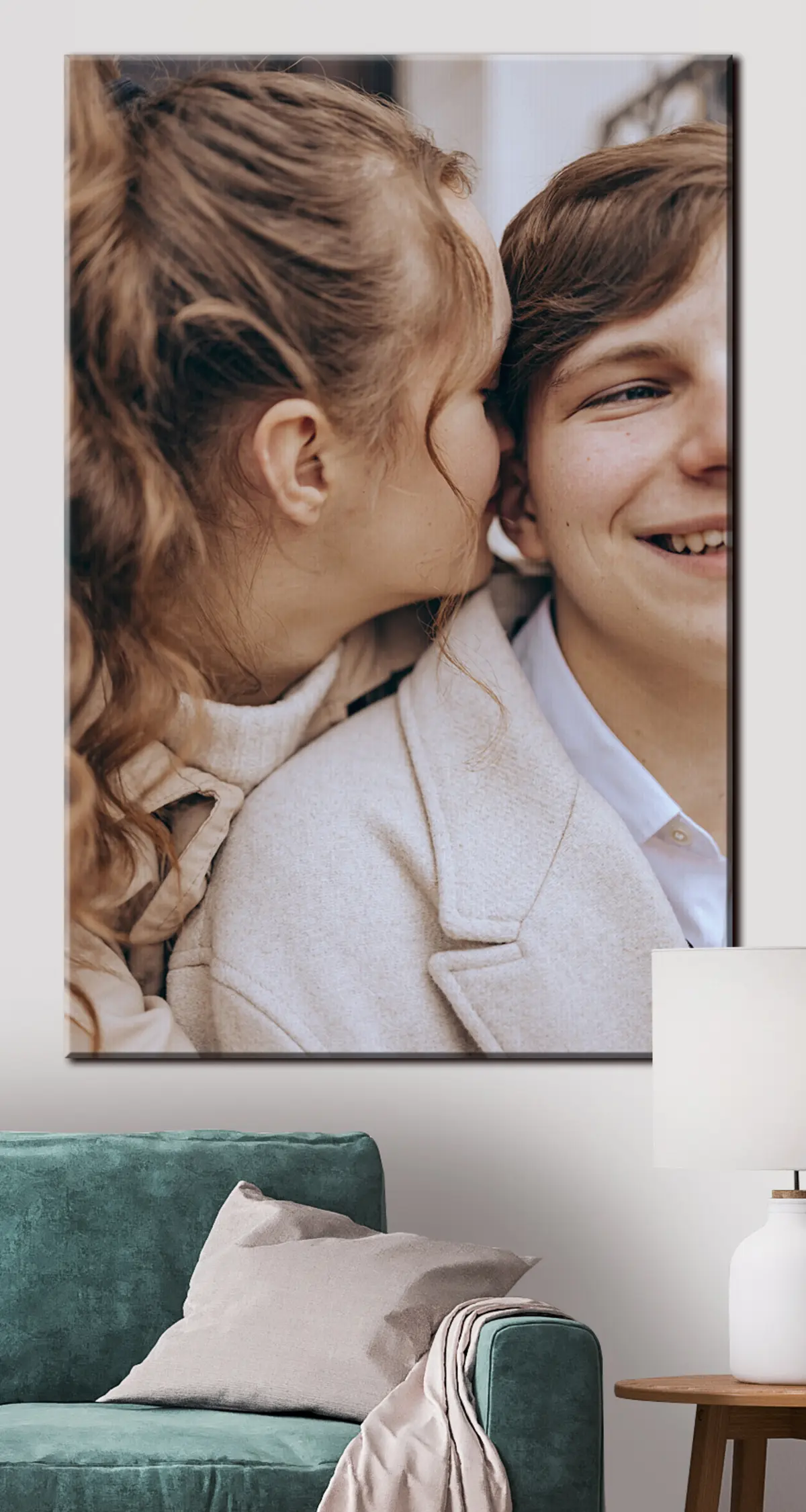 Mēs varam izdrukāt jūsu fotoattēlu uz audekla vai plakāta. Augšupielādējiet un pielāgojiet savu fotoattēlu mūsu redaktorā tikai 5 minūtēs.
