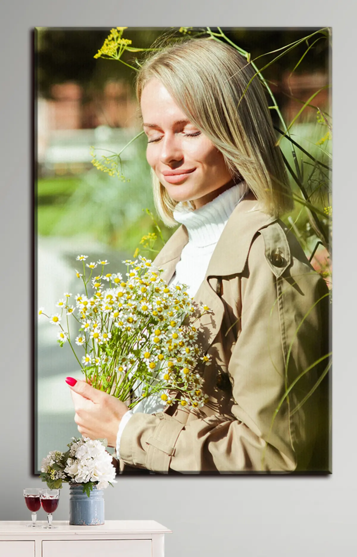 Mēs varam izdrukāt jūsu fotoattēlu uz audekla vai plakāta. Augšupielādējiet un pielāgojiet savu fotoattēlu mūsu redaktorā tikai 5 minūtēs.