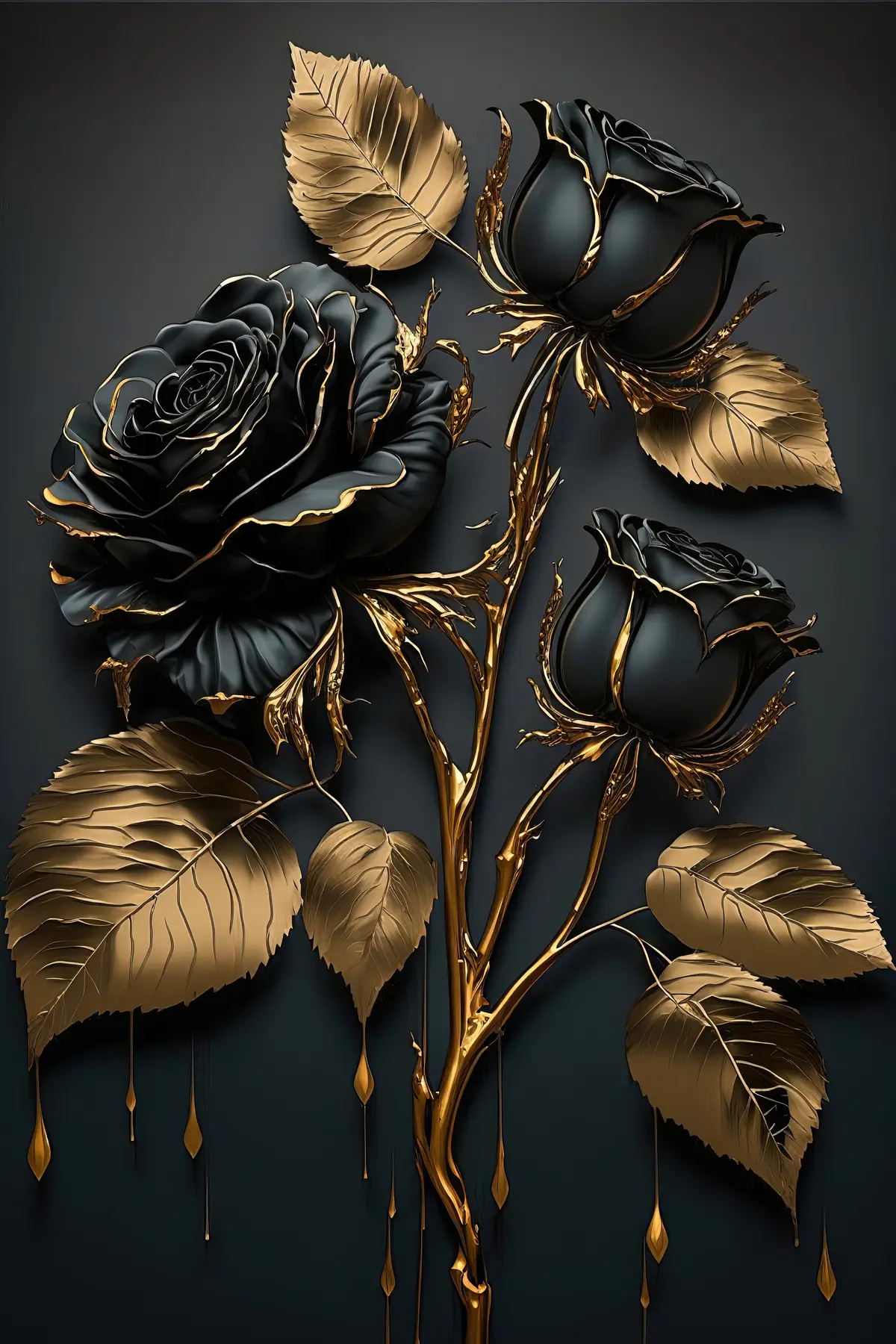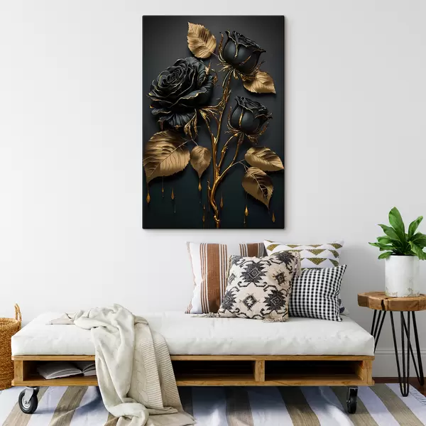 Glezna Melnā roze ar lapām s33700