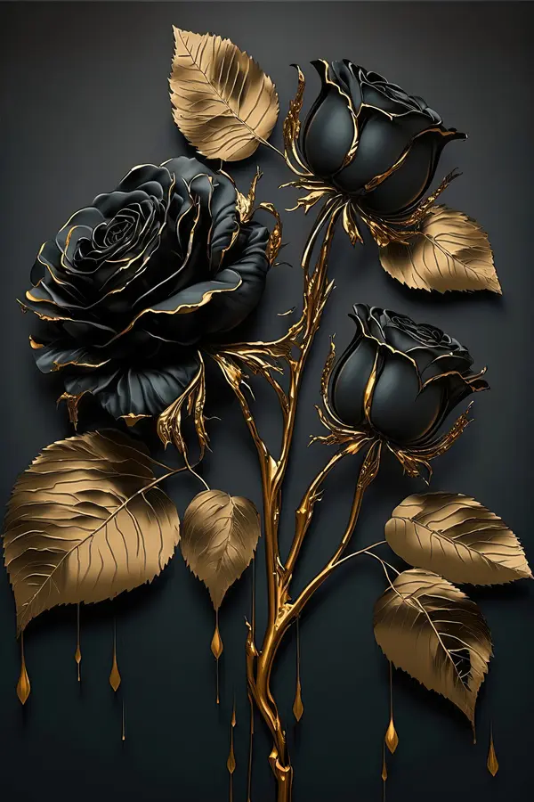 Glezna Melnā roze ar lapām Nr s33700