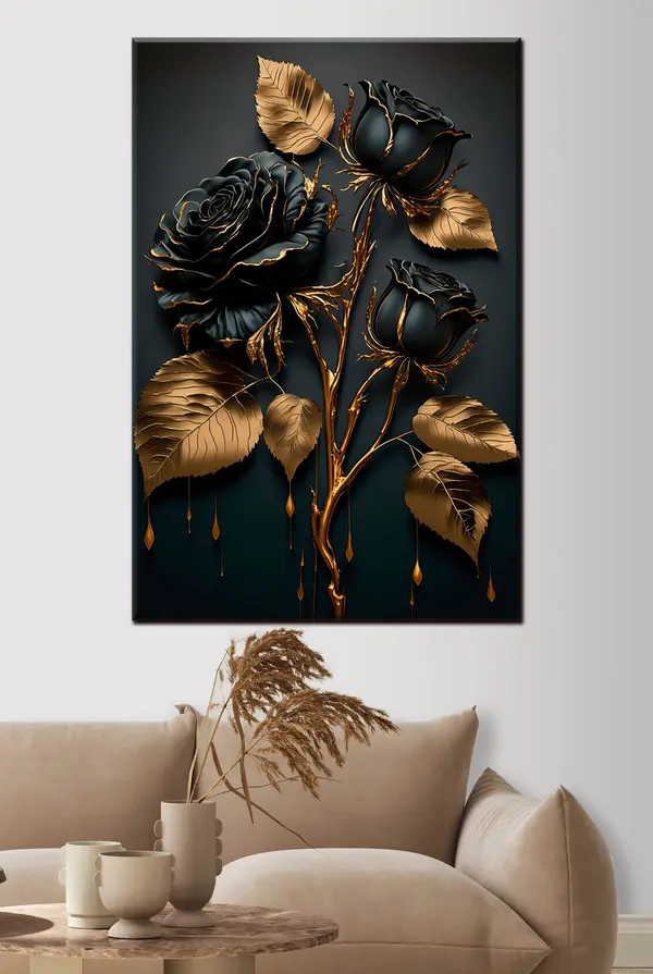 Glezna Melnā roze ar lapām s33700