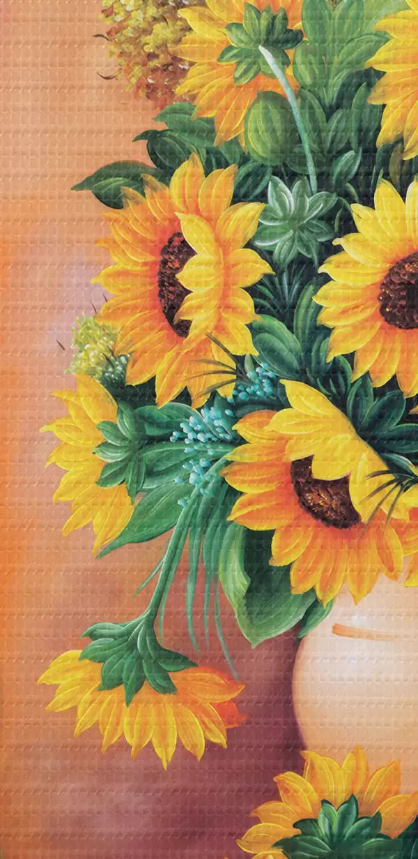 Smalkais diegu pinums uz šī audekla atgādina profesionālu mākslinieku audeklu virsmu.