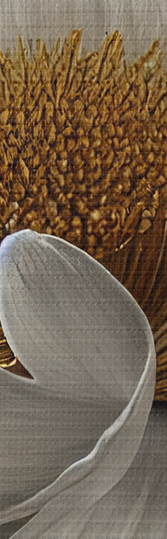Smalkais diegu pinums uz šī audekla atgādina profesionālu mākslinieku audeklu virsmu.