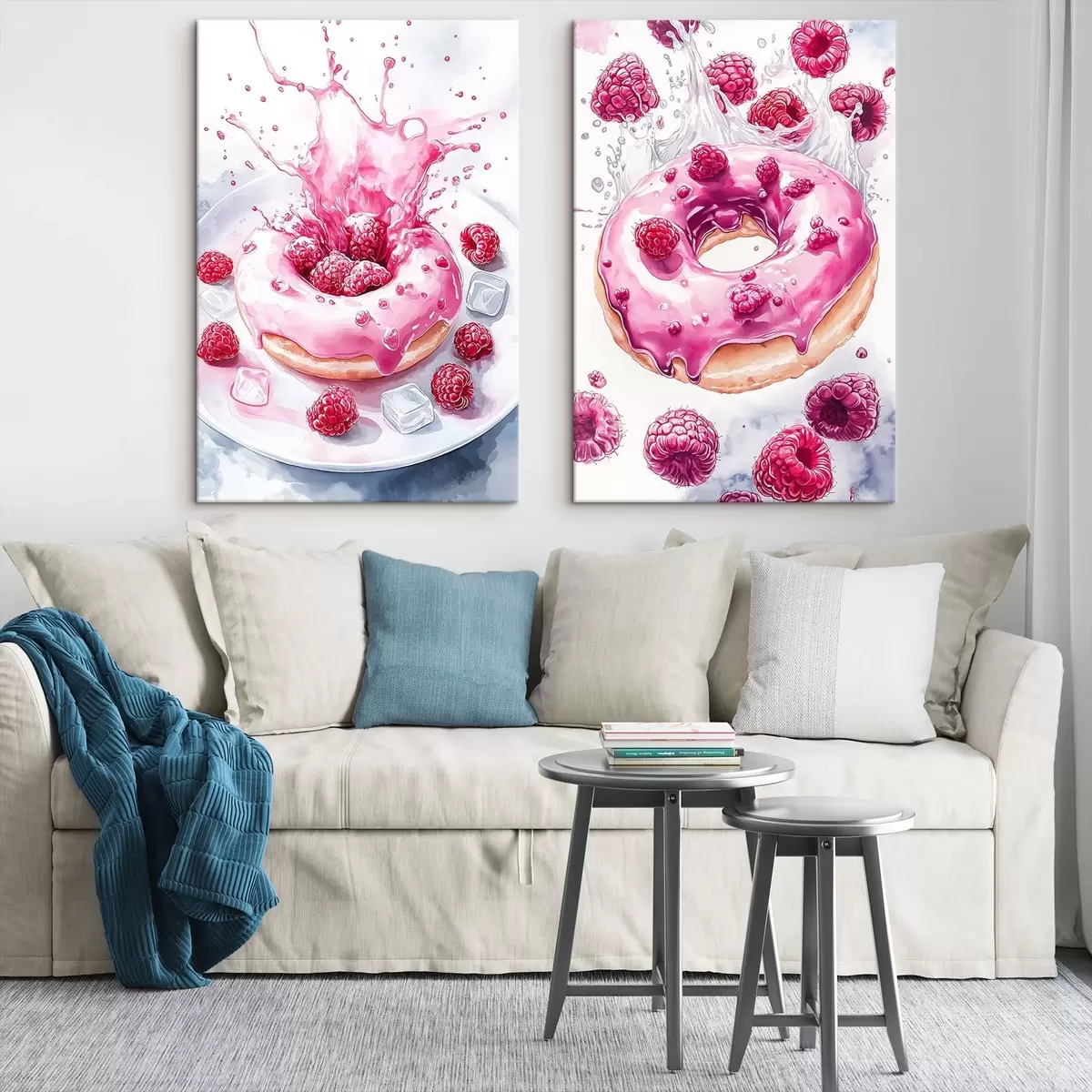 Glezna Garšīgi akvareļu stila donuti ar avenēm, rozā krāsām Nr m00412