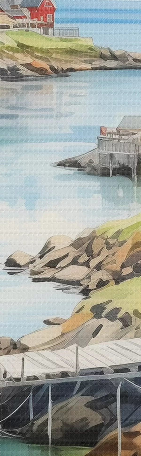 Glezna Norvēģija daba, Lofotu salas, vasaras ainava, sarkanās mājas, kalni, laivas Nr m00421
