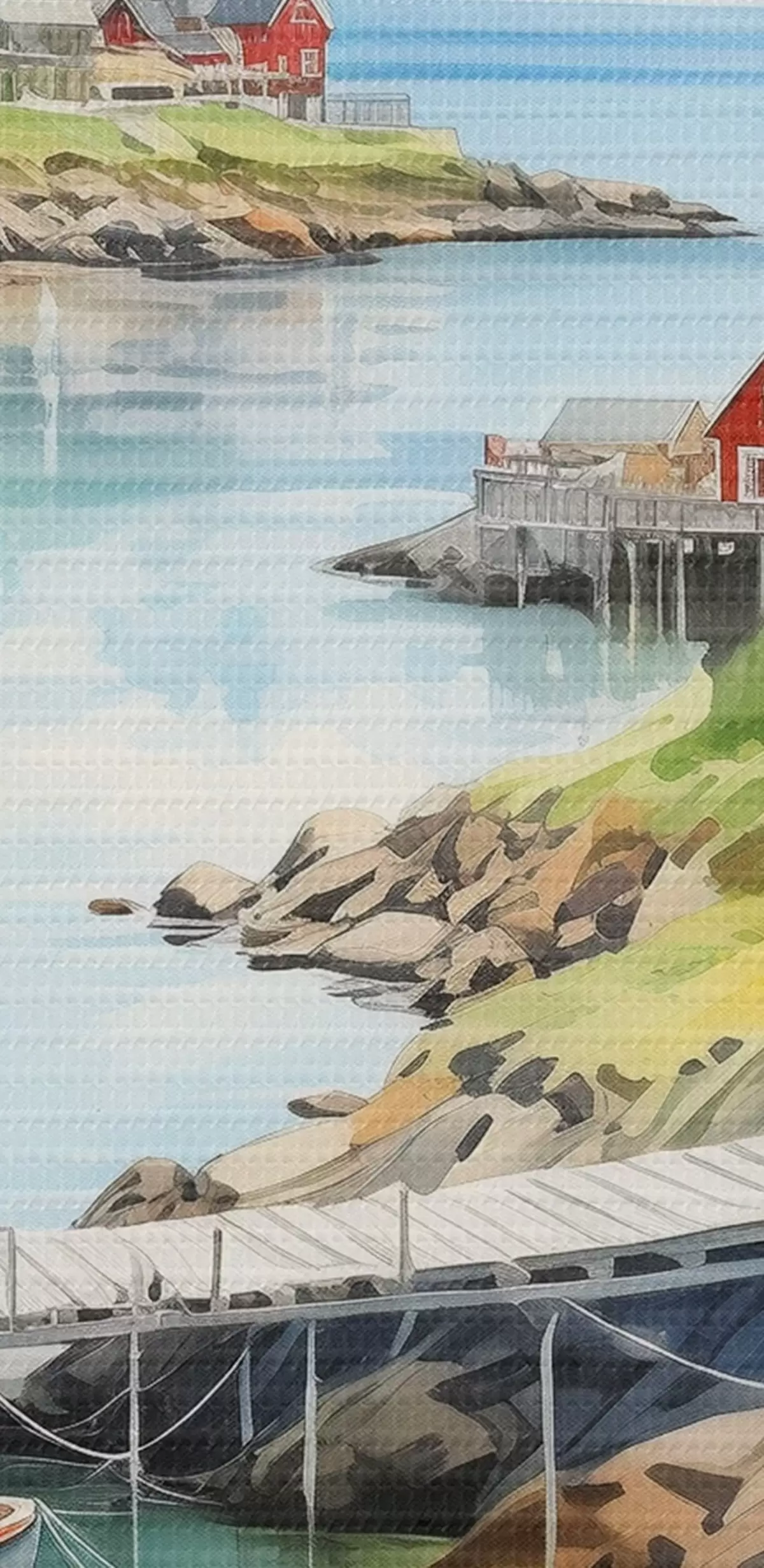 Glezna Norvēģija daba, Lofotu salas, vasaras ainava, sarkanās mājas, kalni, laivas Nr m00421