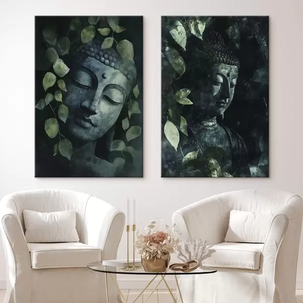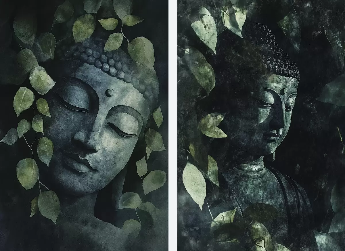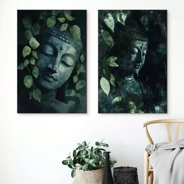 Glezna Zaļš Buda tropu lapās, akvareļu stilā Nr m00451