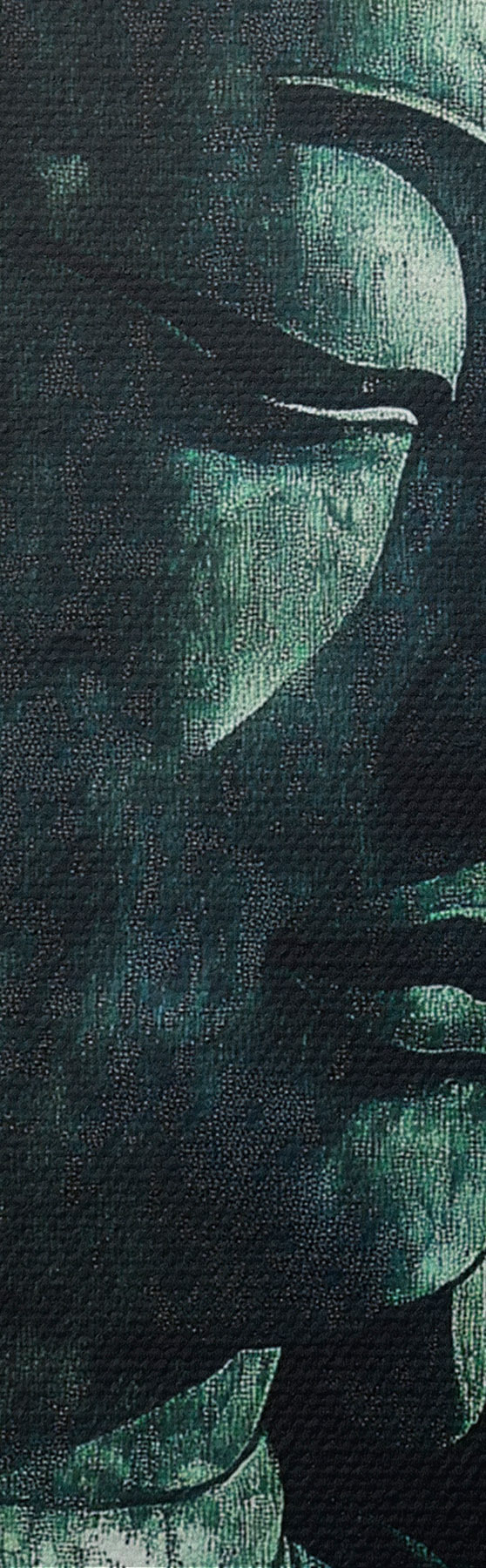 Smalkais diegu pinums uz šī audekla atgādina profesionālu mākslinieku audeklu virsmu.