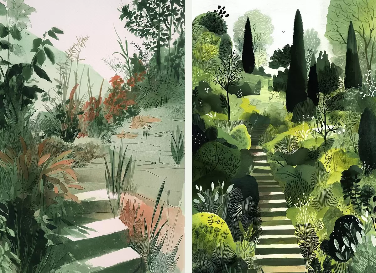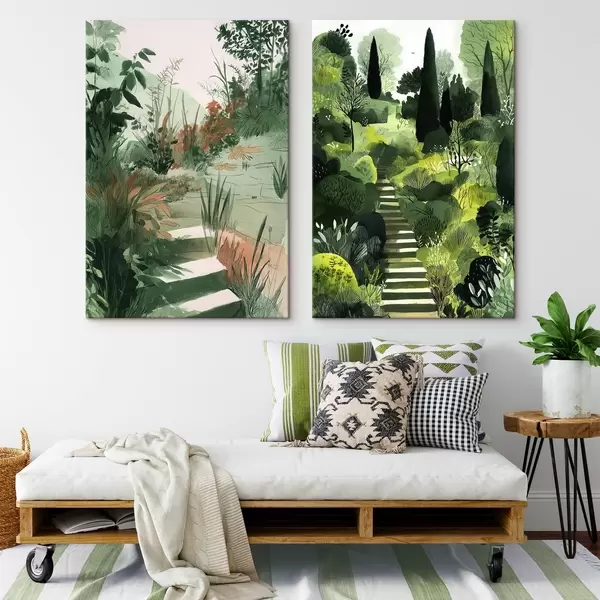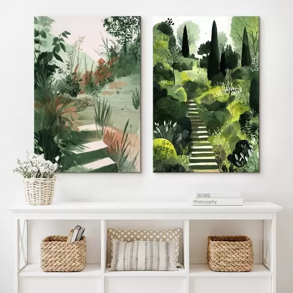 Glezna Zaļš austrumu dārzs ar krūmiem un kokiem Nr m00478
