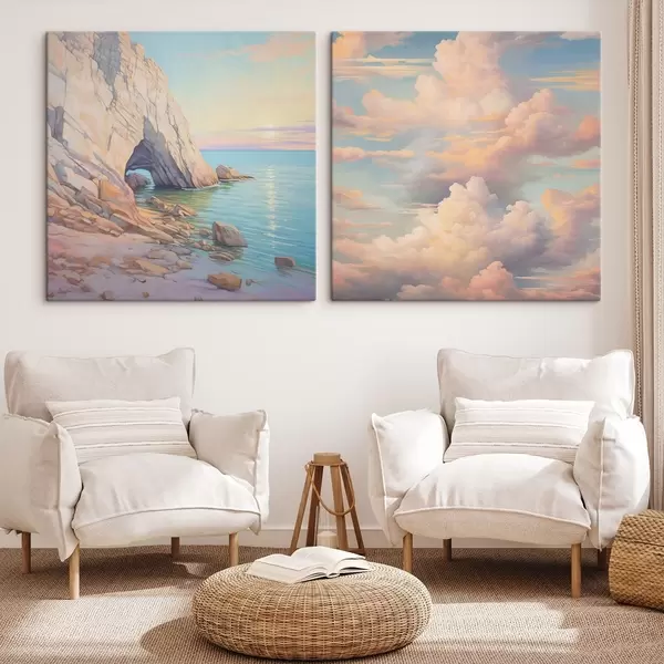 Glezna Viļņi akmeņainā krastā un debesis ar mākoņiem Nr m00487