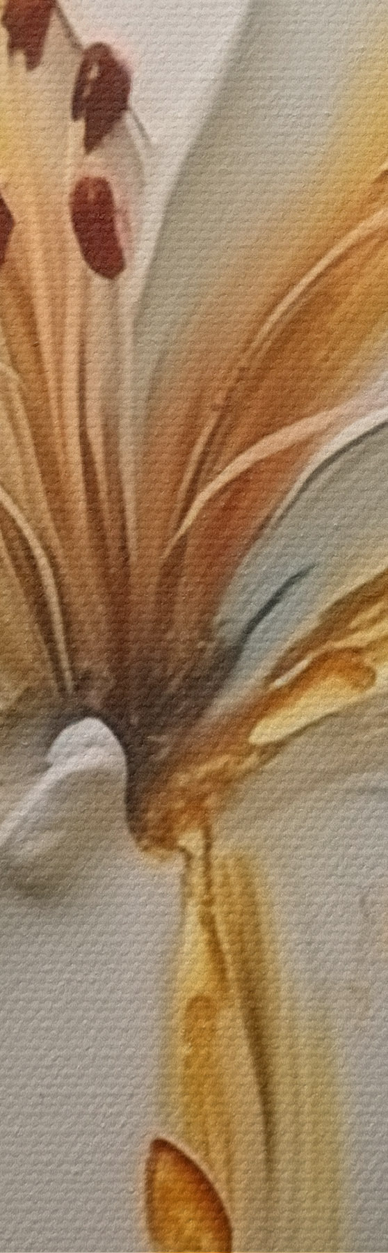 Glezna Baltas lilijas ar dzelteniem triepieniem uz zila fona Nr m00497