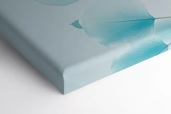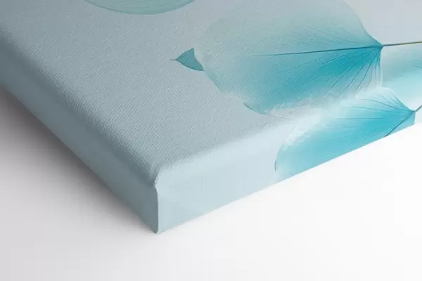 Glezna Zariņš ar caurspīdīgām zilām lapām, redzamas maigas dzīslas, viegla un mierīga kompozīcija, minimālisma estētika Nr m00522