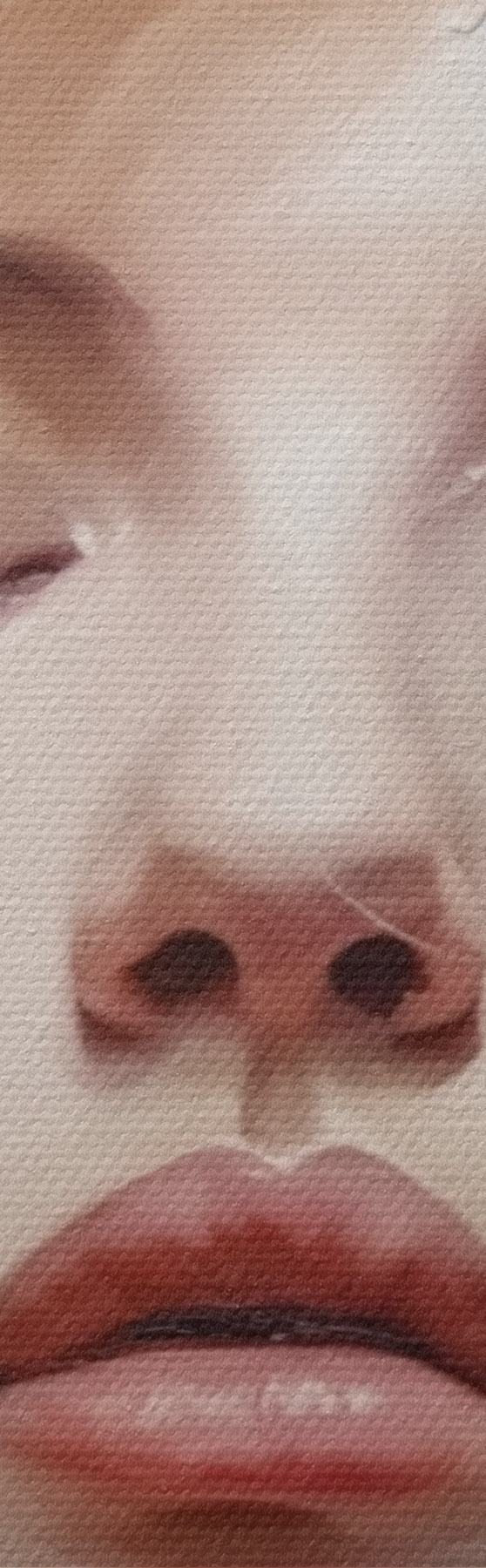 Smalkais diegu pinums uz šī audekla atgādina profesionālu mākslinieku audeklu virsmu.