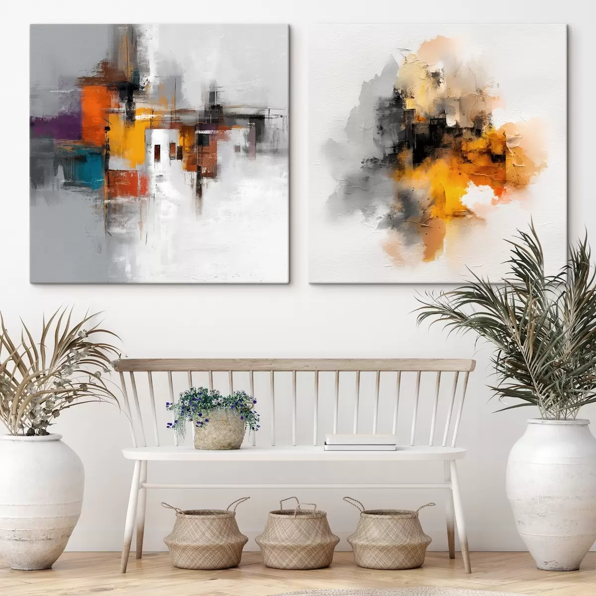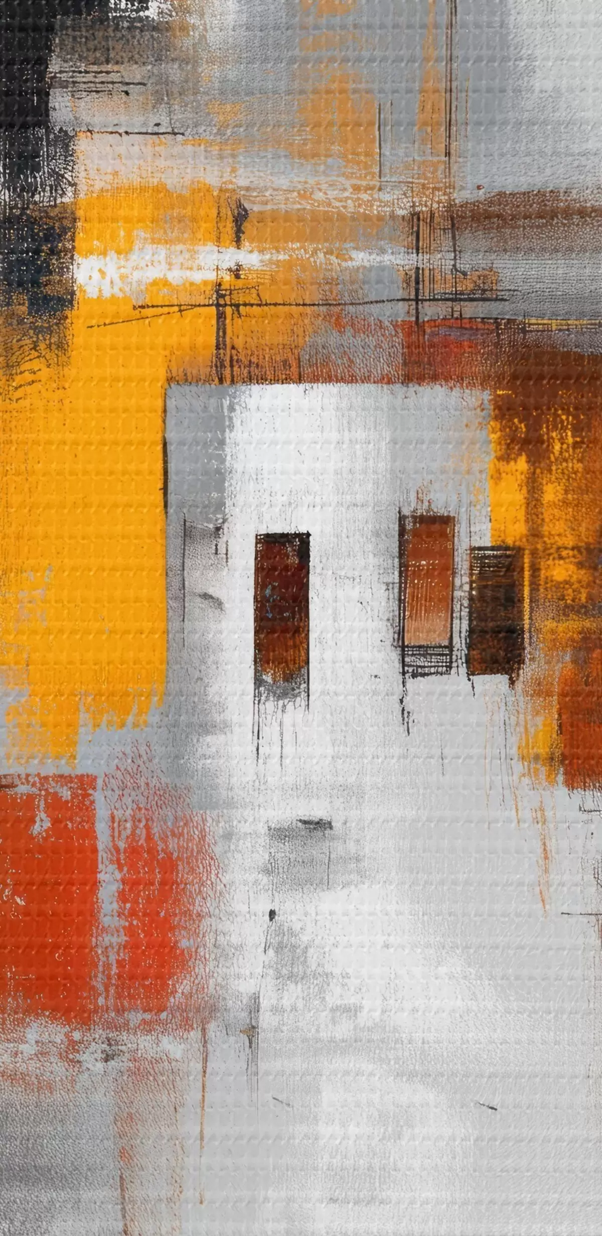 Glezna Izteiksmīga pilsēta: mākslas kompozīcija ar kontrastējošām krāsām Nr m00566