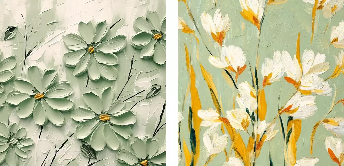 Glezna Ziedu pļava: mākslas kompozīcija ar apjomīgiem ziediem uz pasteļfona Nr m00567