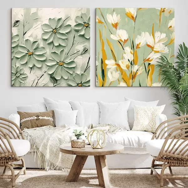 Glezna Ziedu pļava: mākslas kompozīcija ar apjomīgiem ziediem uz pasteļfona Nr m00567