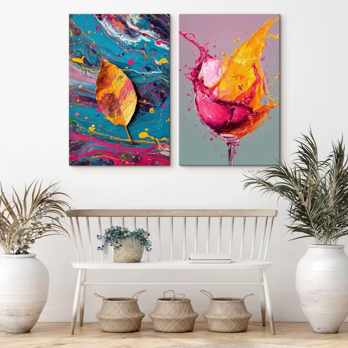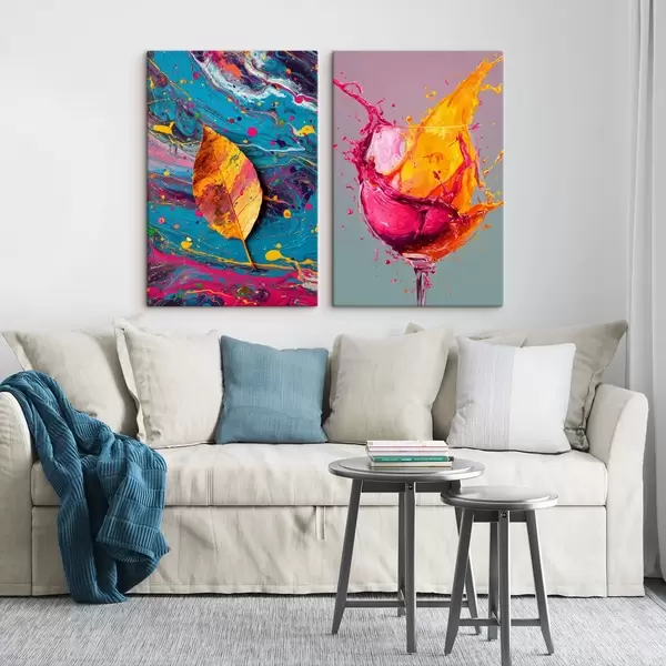 Glezna Izteiksmīga abstrakcija ar dabas un dzērienu elementiem Nr m00570