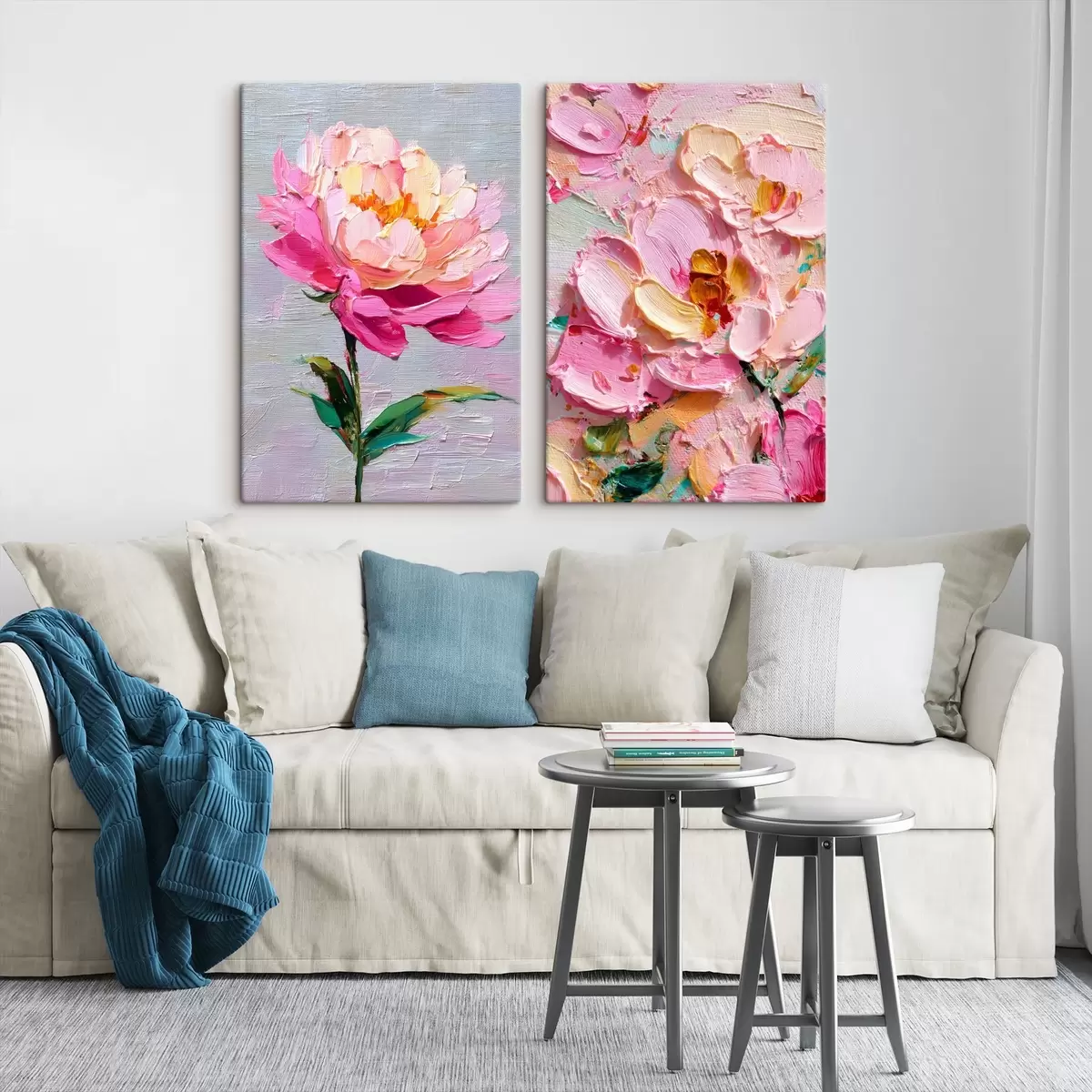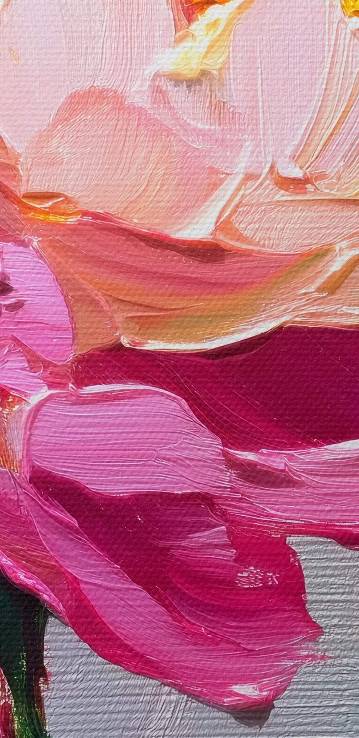 Glezna Modernā māksla ar rozā ziediem volumetriskā tehnikā Nr m00572