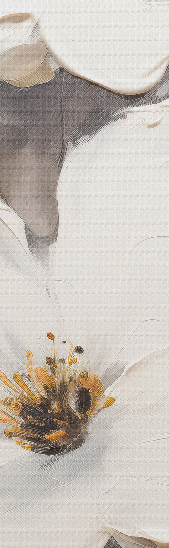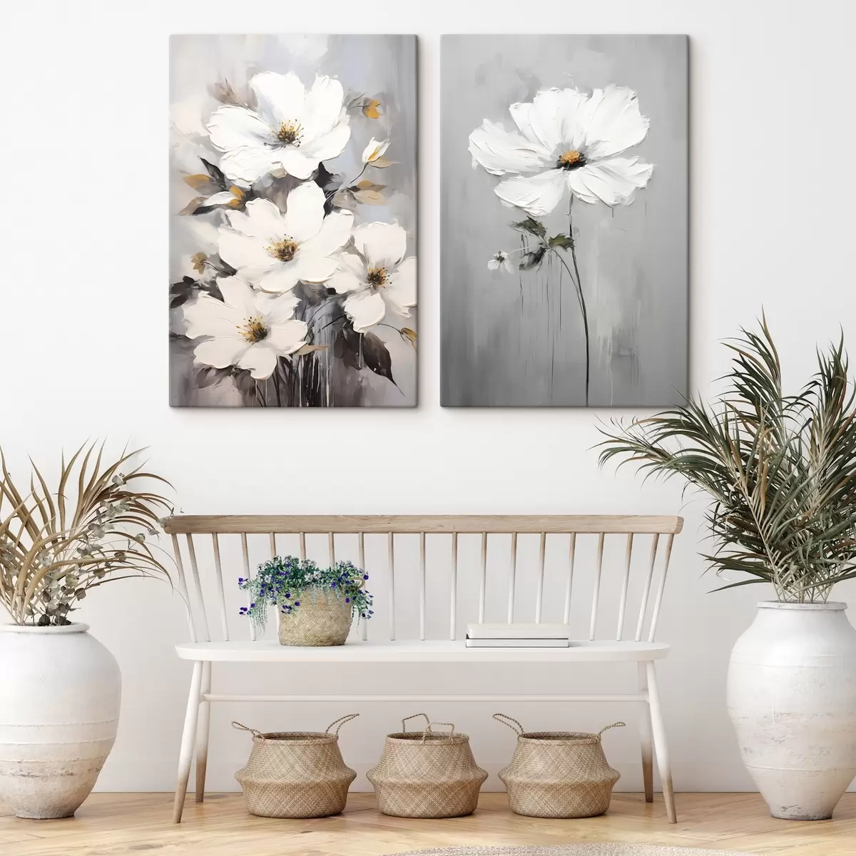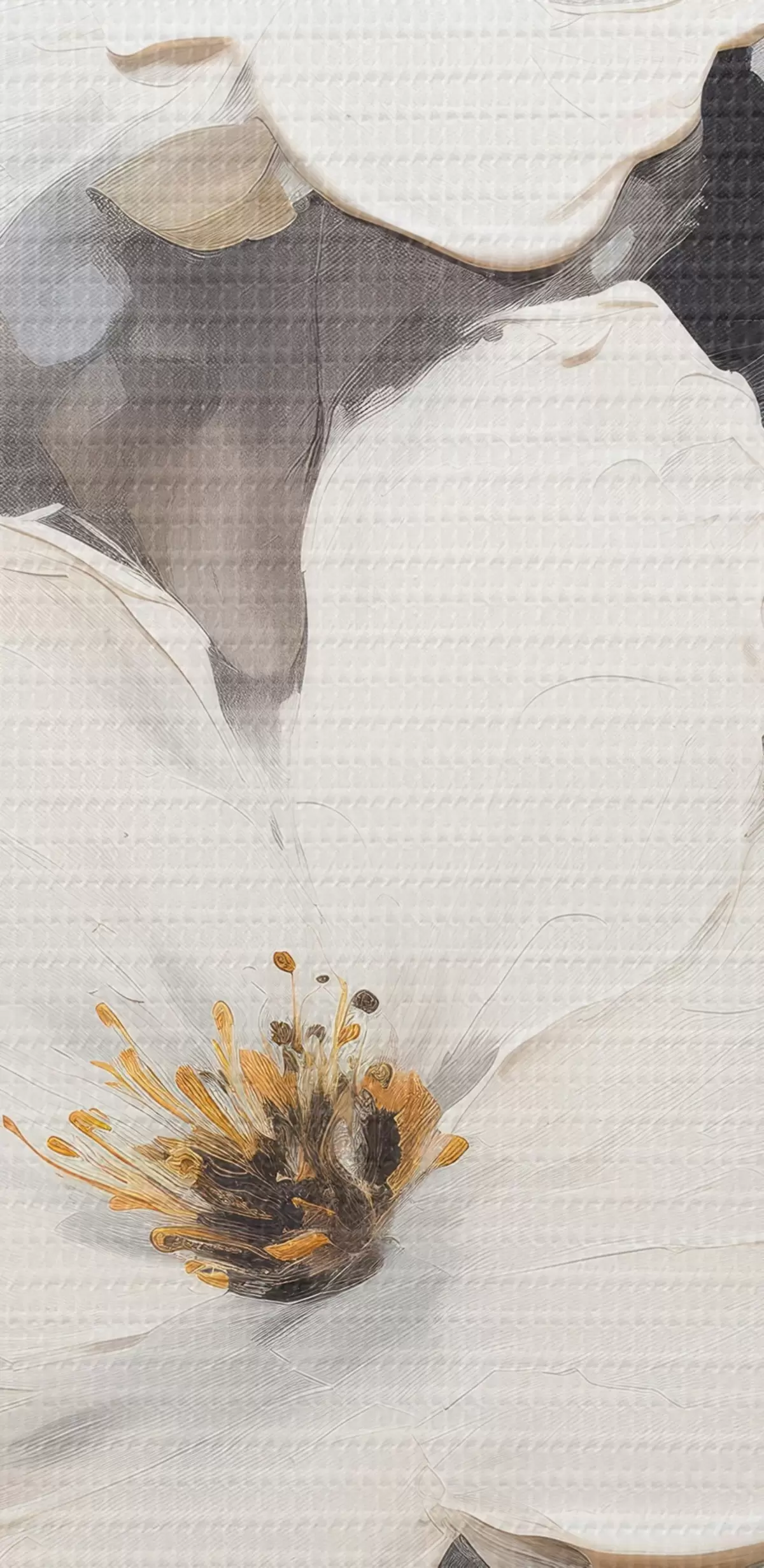 Glezna Mākslinieciska kompozīcija ar baltiem ziediem un fakturētu virsmu minimālisma stilā Nr m00574
