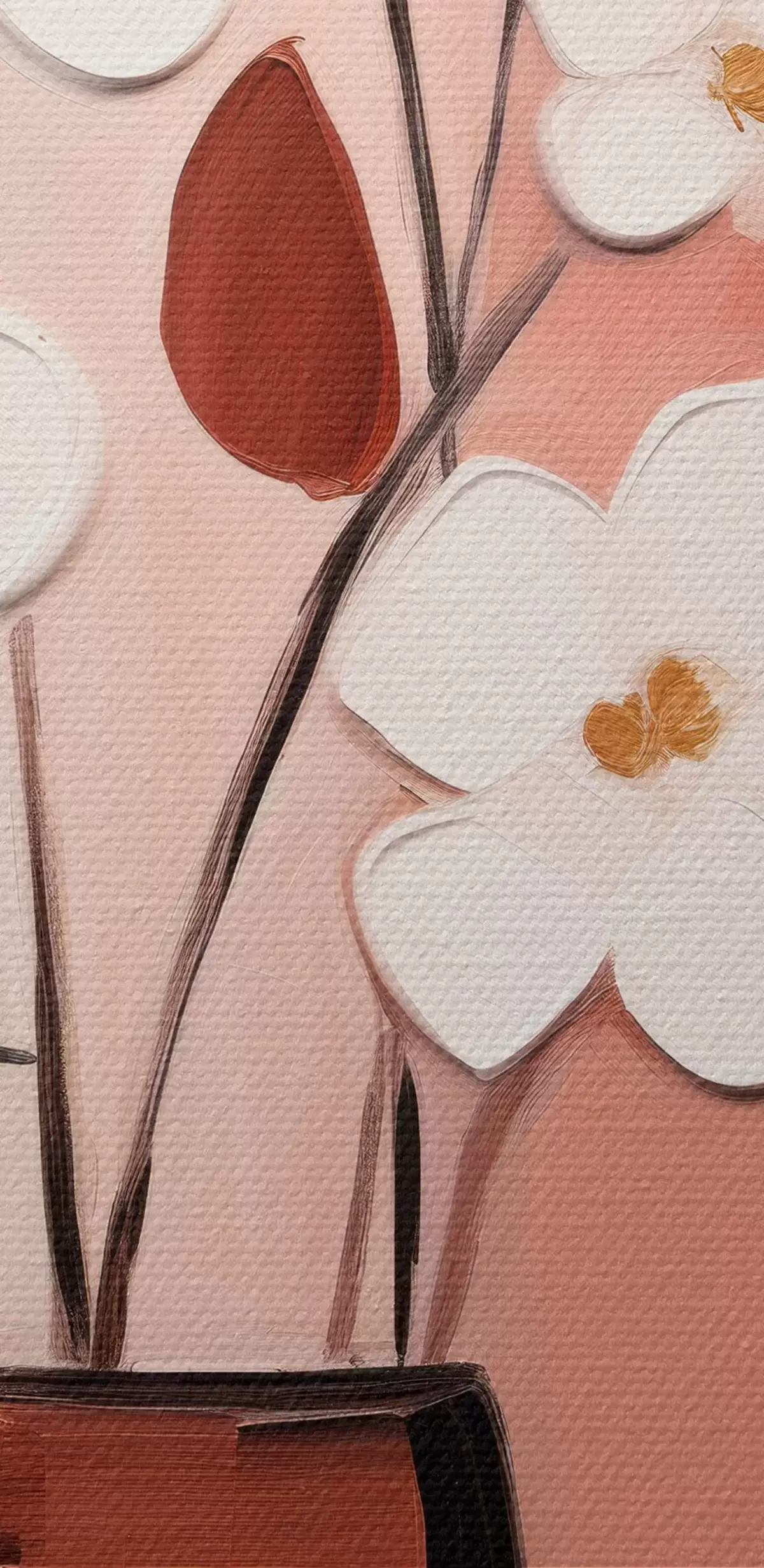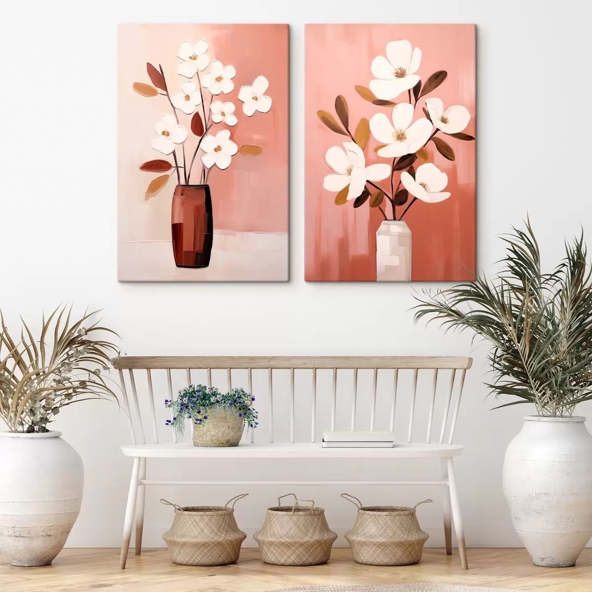 Glezna Kompozīcija ar kontrastējošām vāzēm un fakturētiem baltiem ziediem Nr m00575