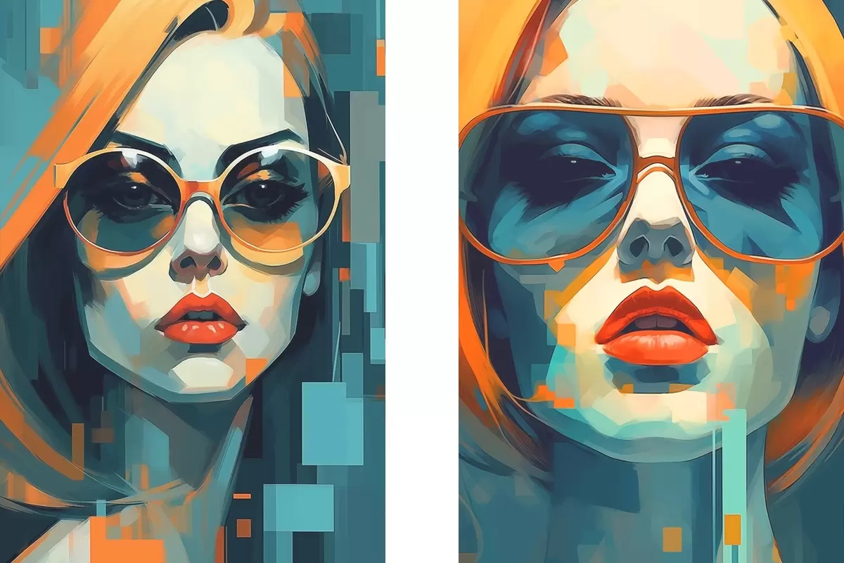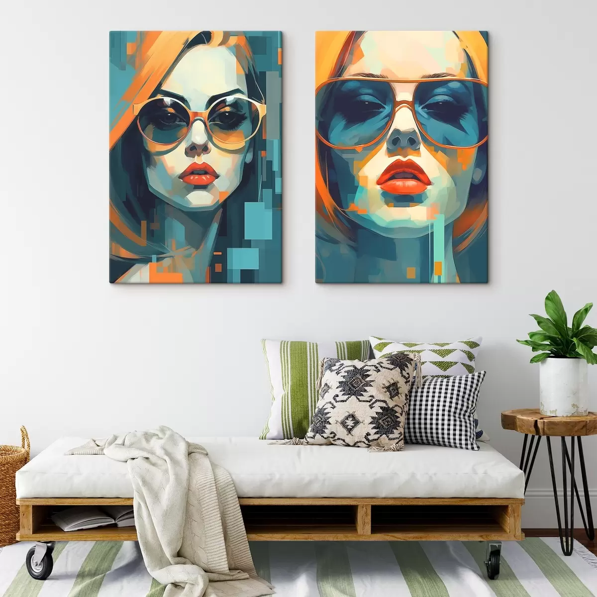 Glezna Sieviešu portreti ar brillēm digitālās abstrakcijas stilā Nr m00587