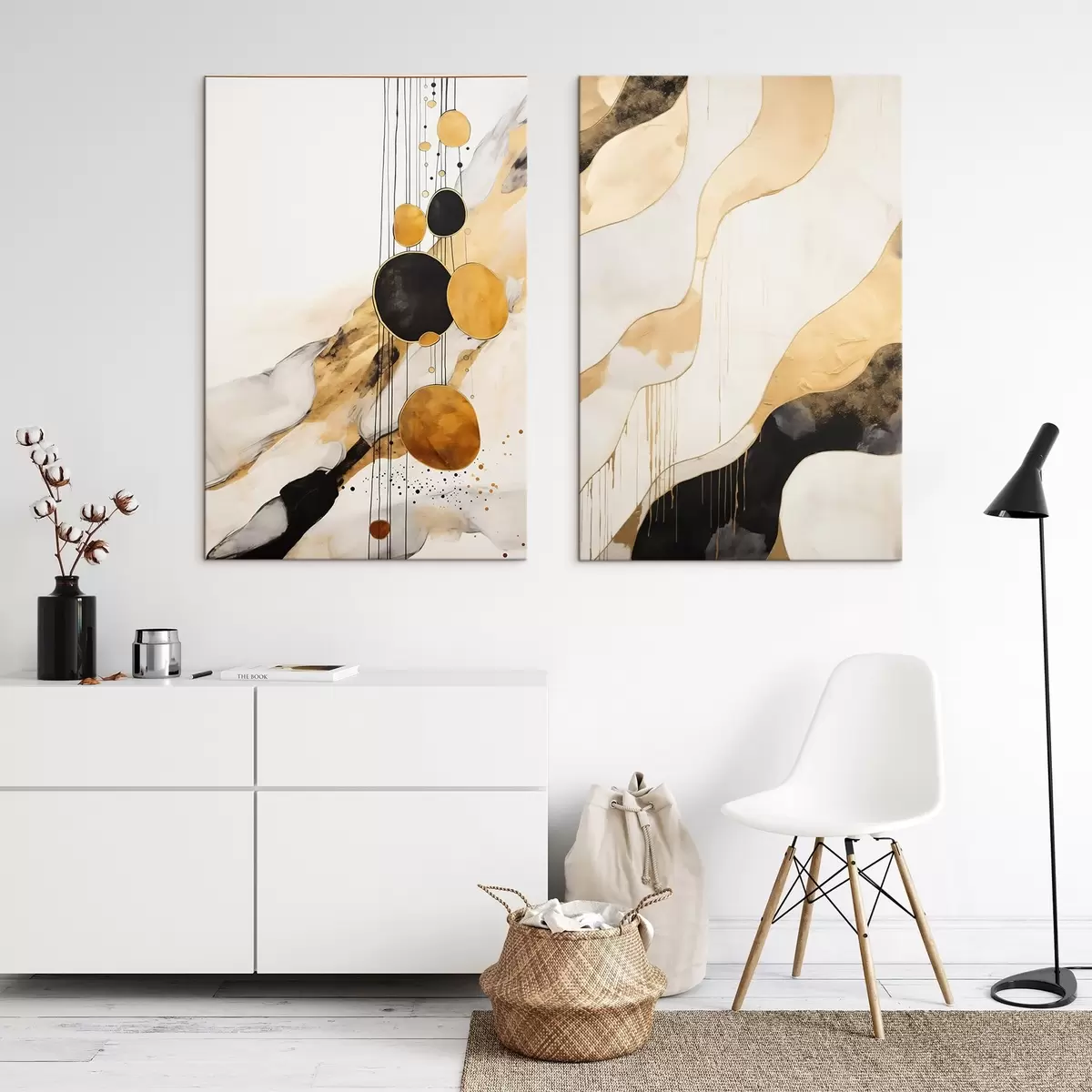 Glezna Abstrakta kompozīcija ar melniem un oranžiem apļiem Nr m00684