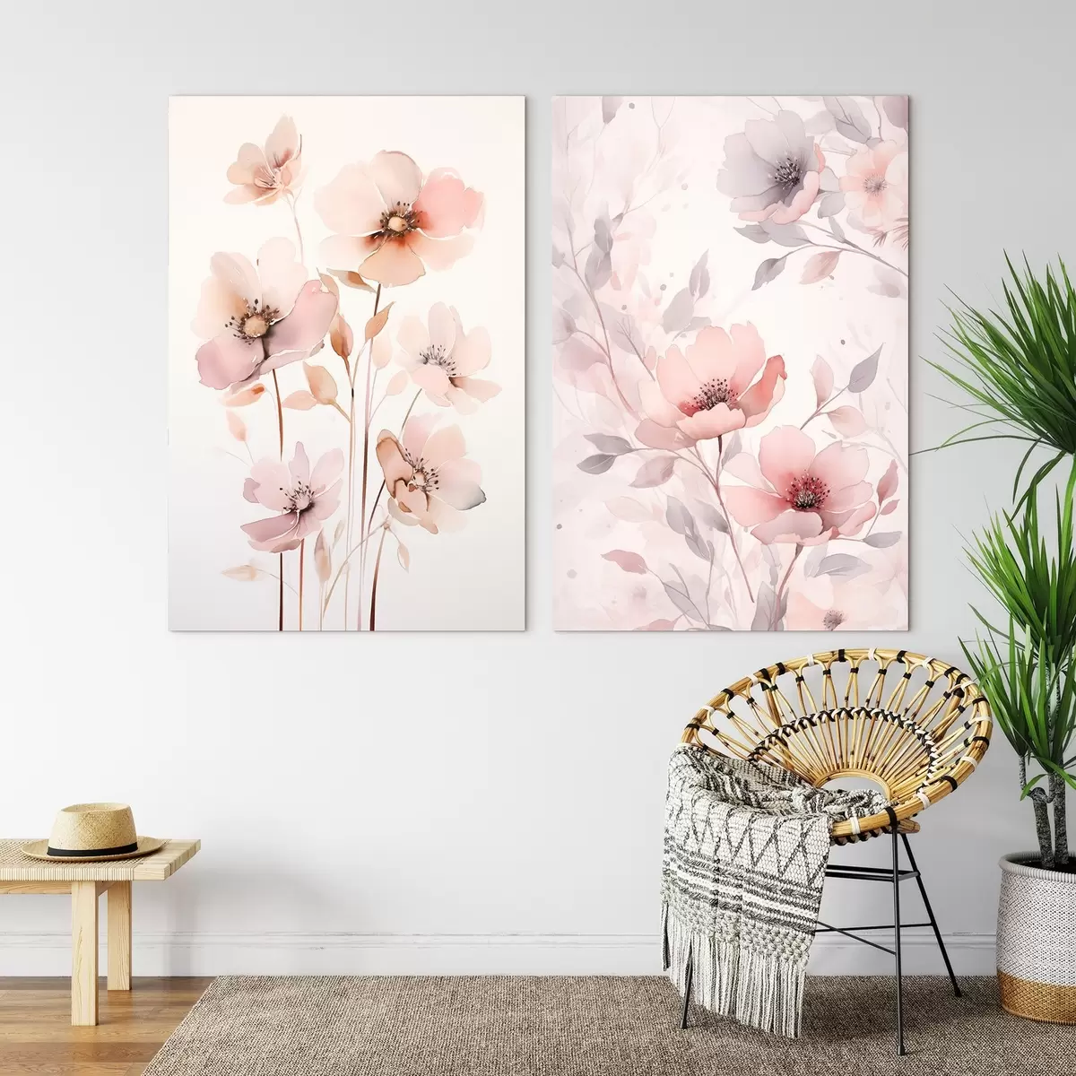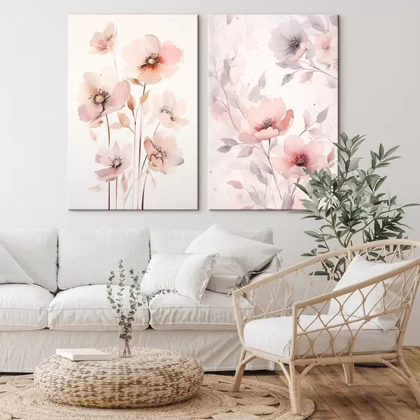 Glezna Akvareļu rozā ziedi uz plāniem kātiņiem Nr m00690