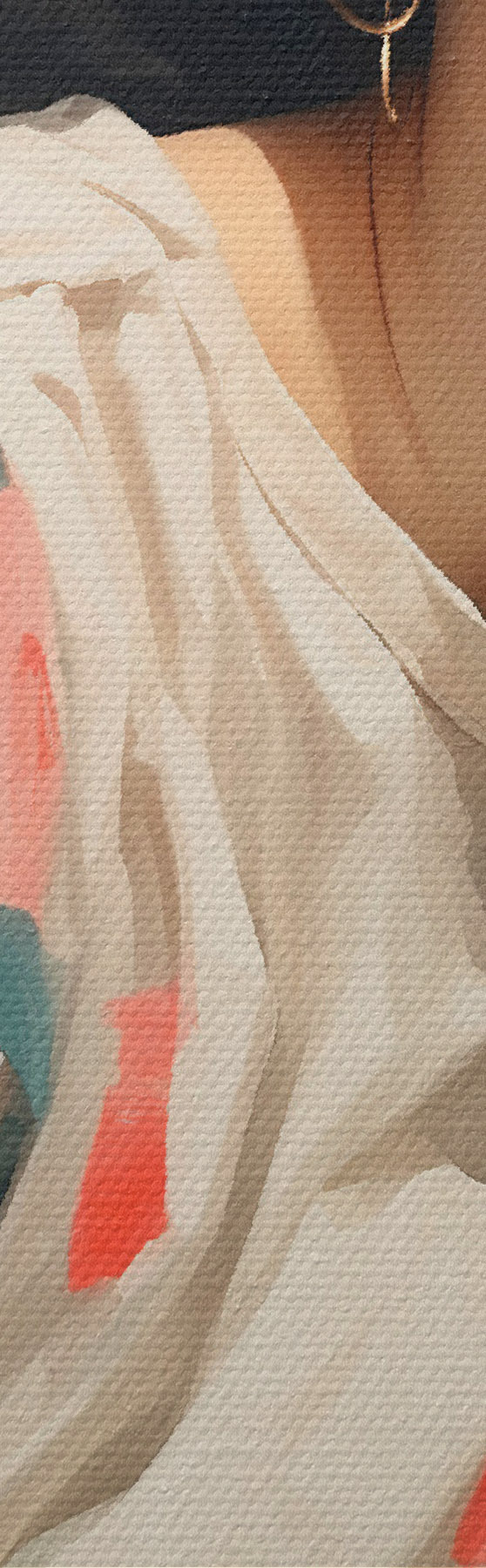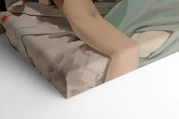 Smalkais diegu pinums uz šī audekla atgādina profesionālu mākslinieku audeklu virsmu.