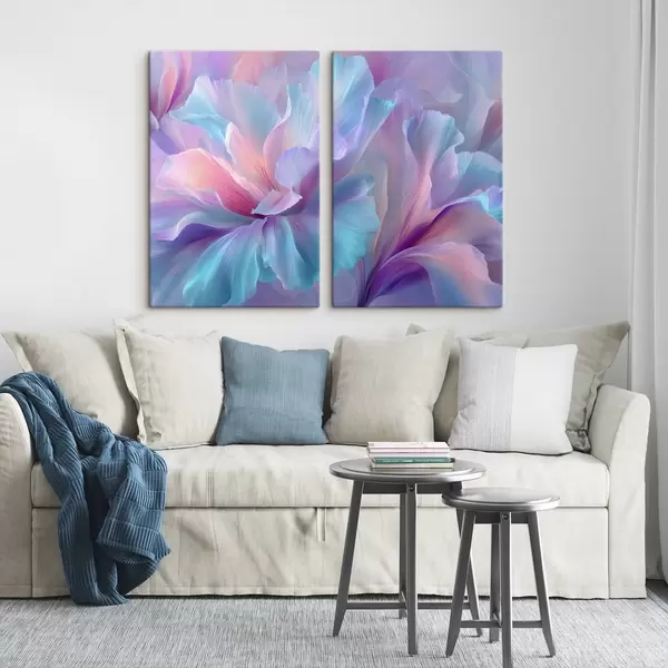 Glezna delikāts fantāzijas ziedu ar ziedlapiņām violeta, zila un rozā toņos. Nr m00700
