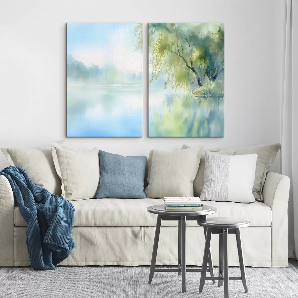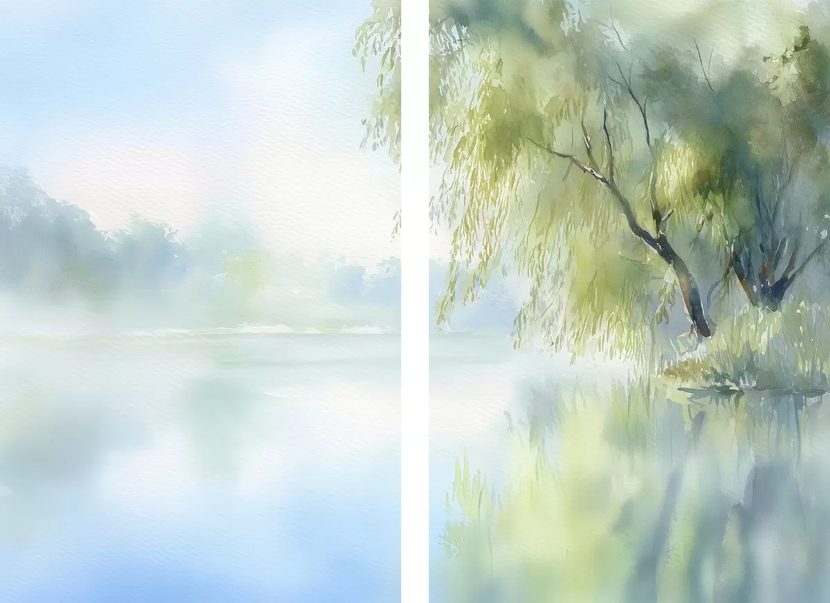 Glezna vītols ezera krastā akvareļa stilā Nr m00702