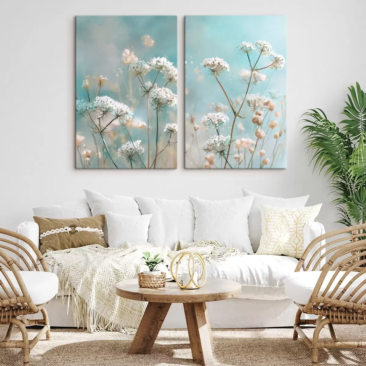 Glezna Karalienes Annes mežģīnes ziedi akvareļa stilā uz zila fona m00705