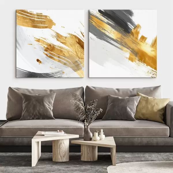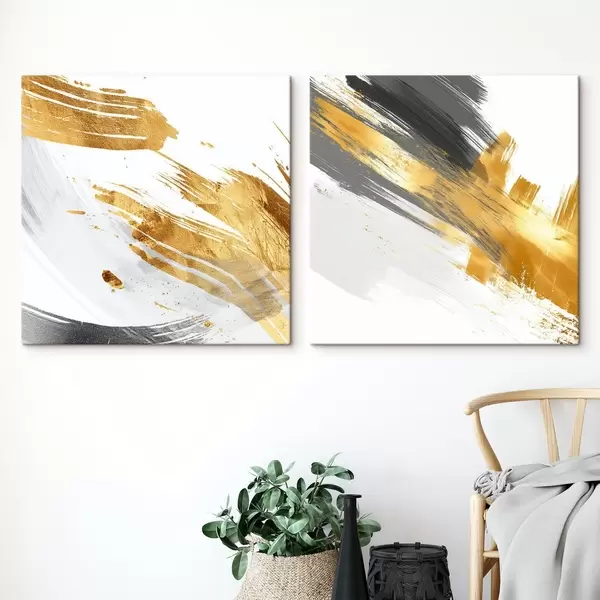 Glezna Dinamisks abstrakts attēls ar dzelteniem un pelēkiem triepieniem m00748