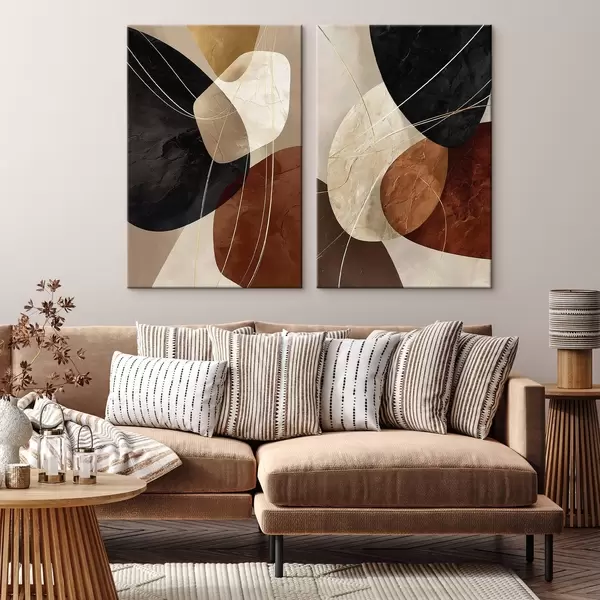 Glezna Ģeometriski ovāli siltā krāsu gamā ar dzeltenām līnijām Nr m00763