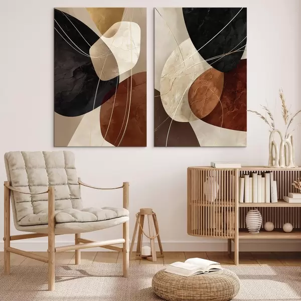 Glezna Ģeometriski ovāli siltā krāsu gamā ar dzeltenām līnijām Nr m00763