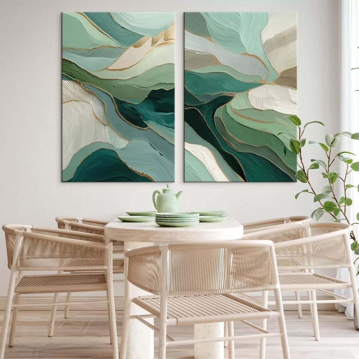 Glezna Smaragda slāņveida abstrakcija ar dzeltenu kontūru Nr m00766