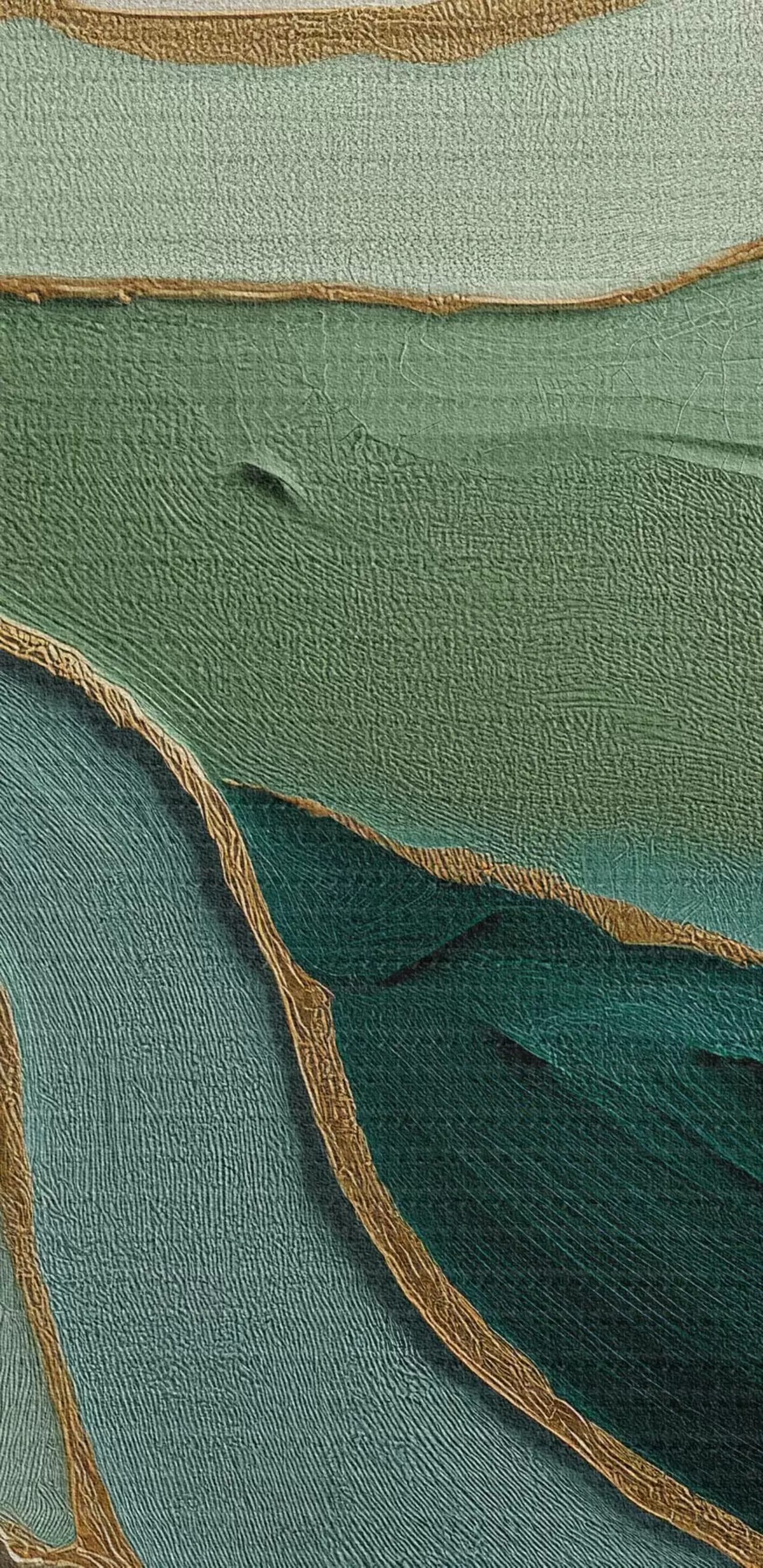 Glezna Smaragda slāņveida abstrakcija ar dzeltenu kontūru Nr m00766