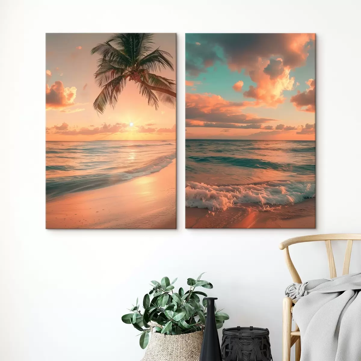 Glezna Saulriets jūras krastā ar skatu uz viļņiem Nr m00787