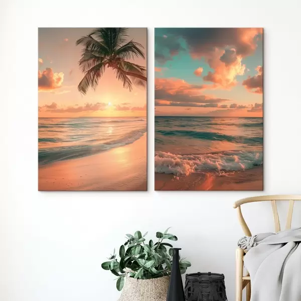Glezna Saulriets jūras krastā ar skatu uz viļņiem Nr m00787