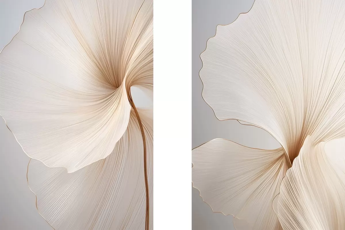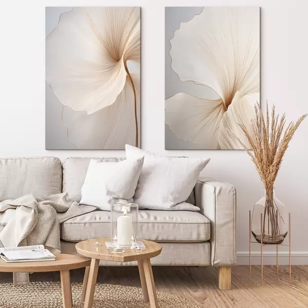 Glezna Abstraktas ziedi ar plāniem, delikātiem ziedlapiem baltā un smilškrāsā toņos Nr m00817