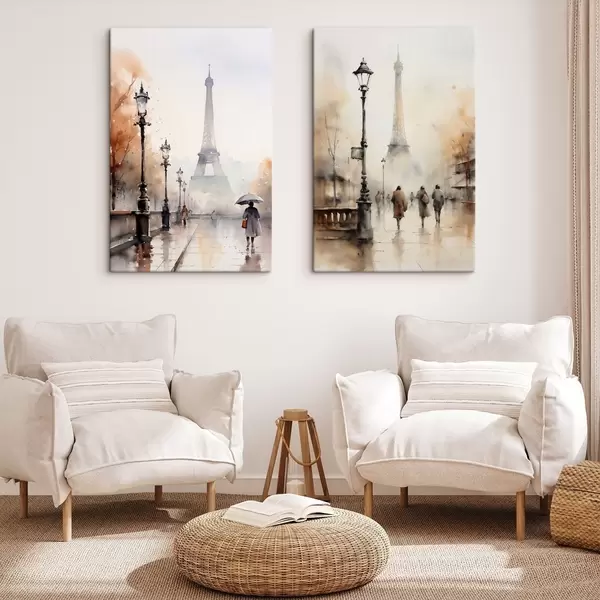 Glezna Lietaina rudens diena Parīzē ar Eifeļa torni fonā un vintage ielu laternām Nr m00821