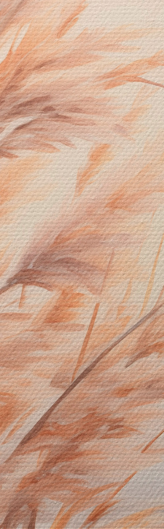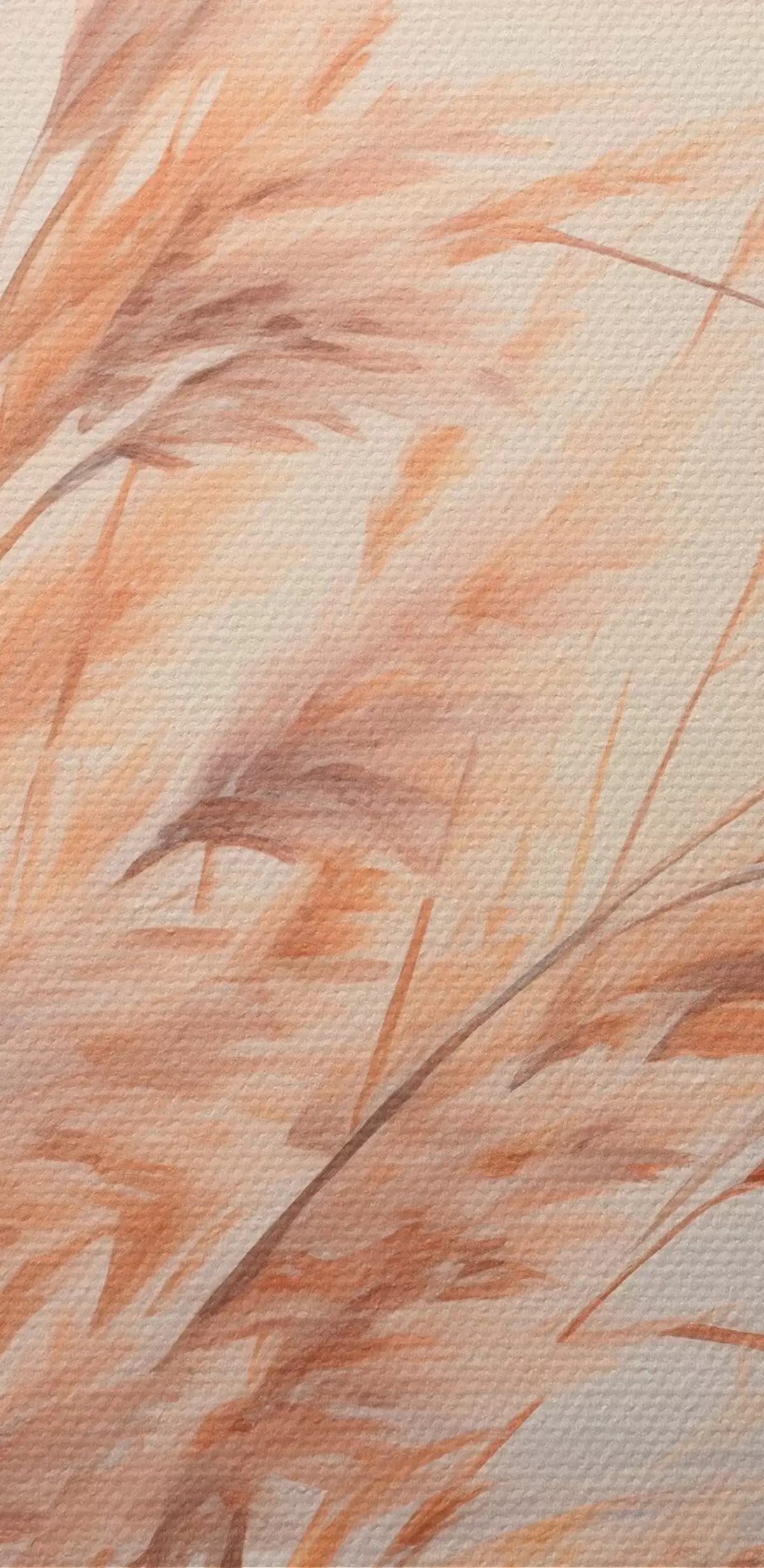 Glezna Pampas zāle ar pasteļoranžu krāsu paleti, gaiši rozā debesis, mierīgs ainava Nr m00823