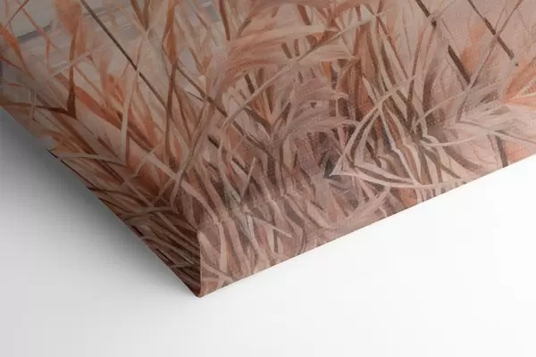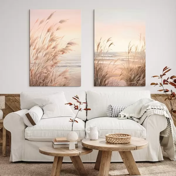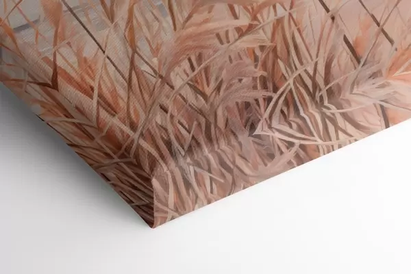 Glezna Pampas zāle ar pasteļoranžu krāsu paleti, gaiši rozā debesis, mierīgs ainava Nr m00823