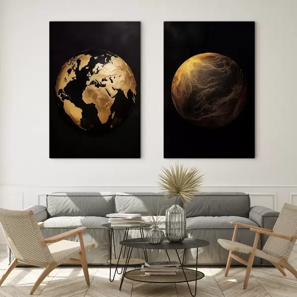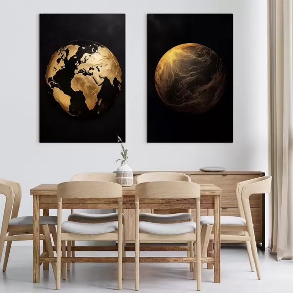 Glezna Teksturēts abstrakts zemeslodes un planētas attēls uz melna fona, moderns minimālisma mākslas darbs Nr m00827