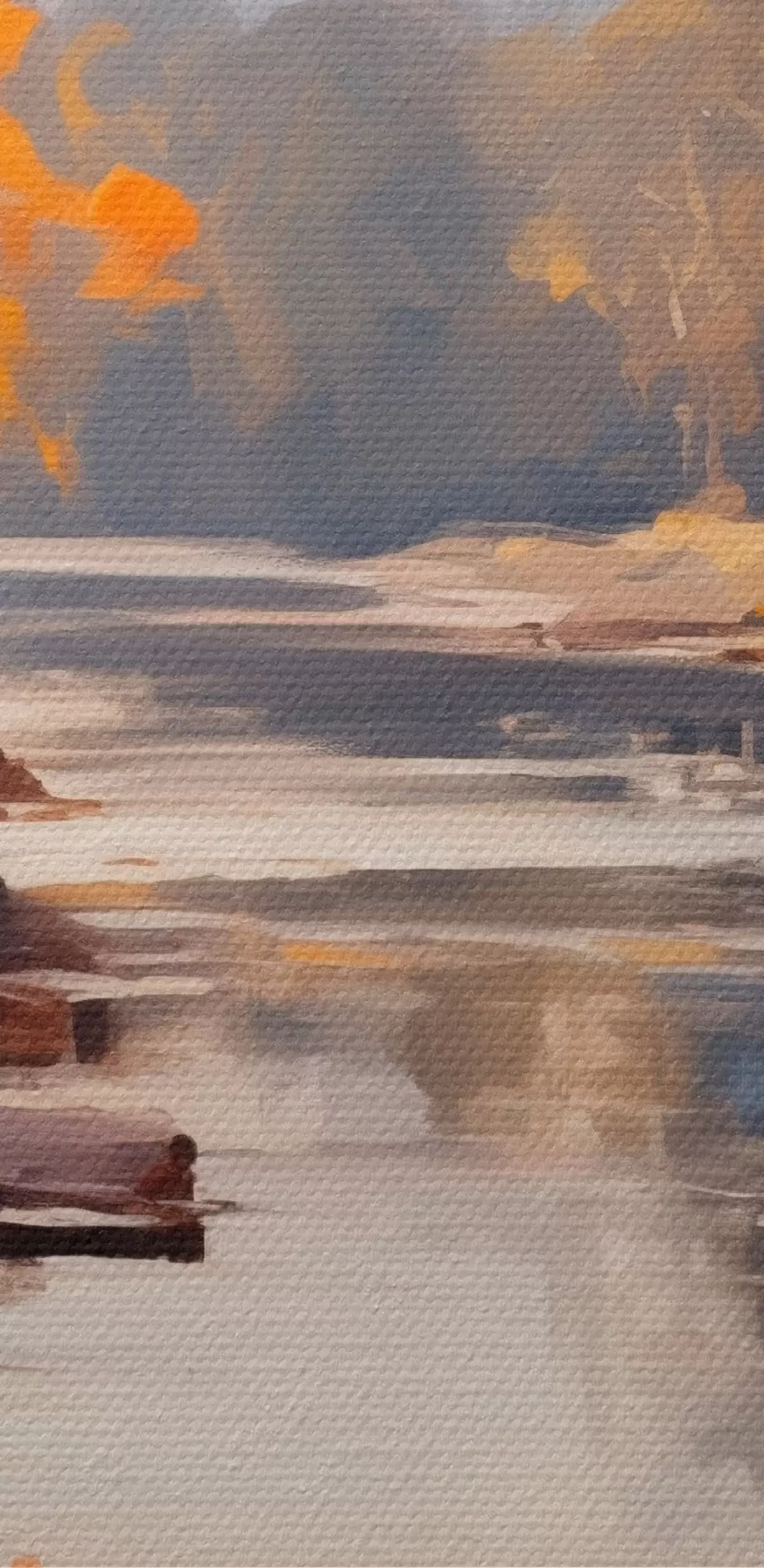 Glezna Rudens ainava, upe ar kokiem krastā, mežs fonā, atspoguļojumi uz ūdens Nr m00883