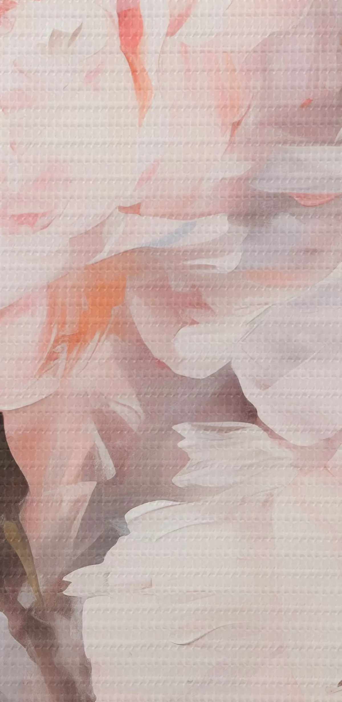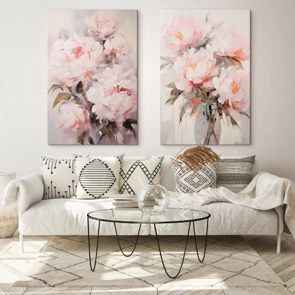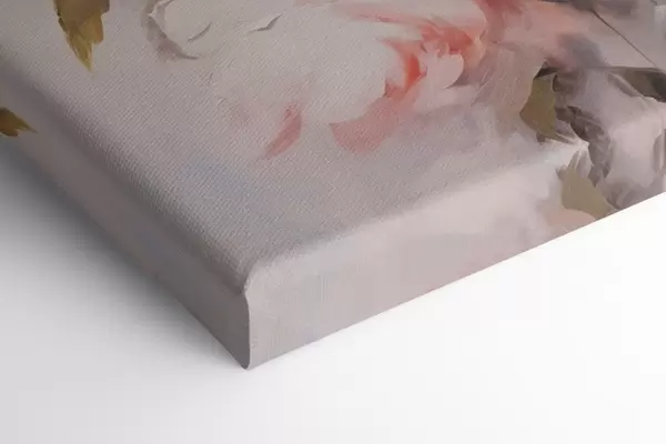 Glezna Gaiši rozā peoniju pušķis ar zaļām lapām, maigi triepieni, pasteļtoņi, uz gaiša fona Nr m00890