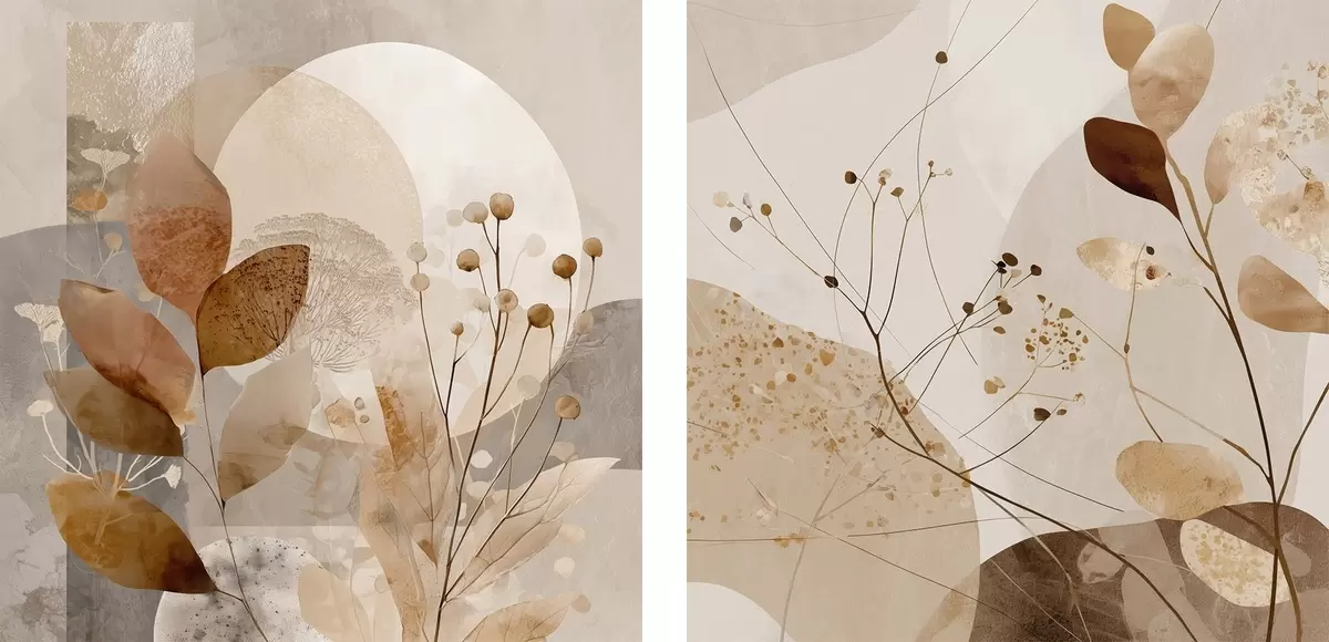 Glezna Abstrakta ziedu divdaļīga kompozīcija Nr m00892