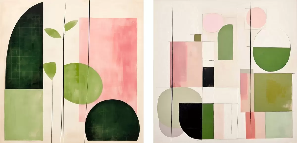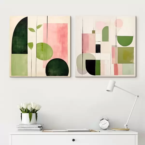 Glezna Minimālisma diptihs ar stilizētu floru un ģeometriju Nr m00894