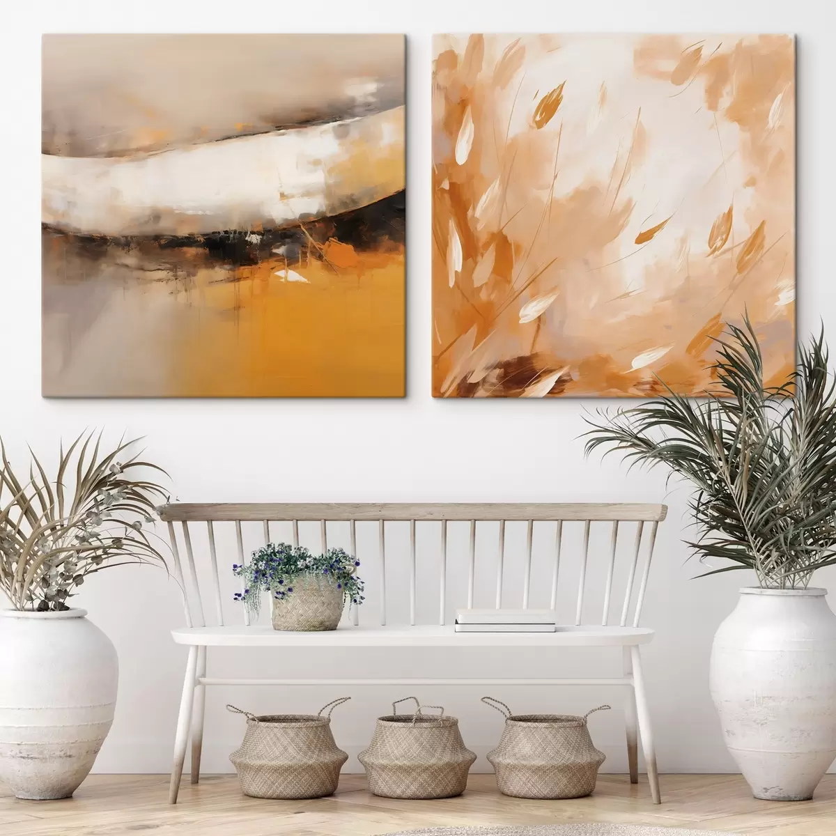 Glezna Abstrakts diptihs eļļas stilā ar dzeltenoranžiem un melniem toņiem Nr m00897